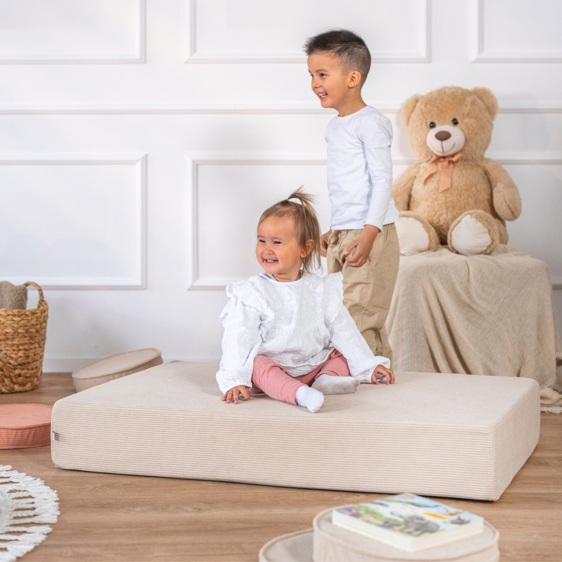 Die Hüpfmatratze ist bereits ab 6 Monaten geeignet und bietet den Kleinsten erste Kletterversuche und motorische Erkundungen. Sie ist für Kinder bis zu einem Gewicht von 40 kg ausgelegt und begleitet sie somit über viele Jahre hinweg.