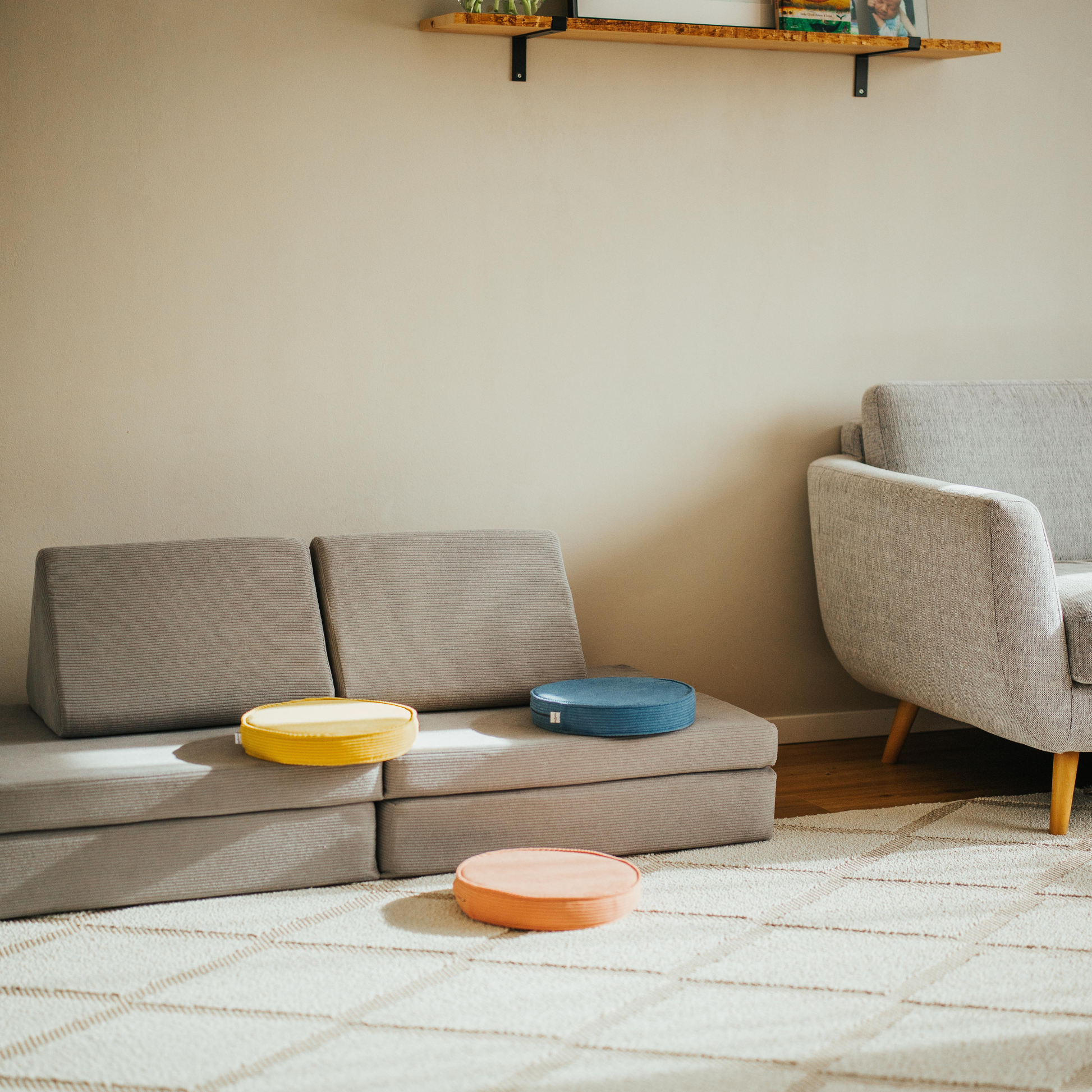 Die weichen Cordbezüge sind robust, abnehmbar und waschbar und damit perfekt für den Familienalltag geeignet. Rutschhemmende Unterseiten und geschützte Reißverschlüsse sorgen zusätzlich für Sicherheit.