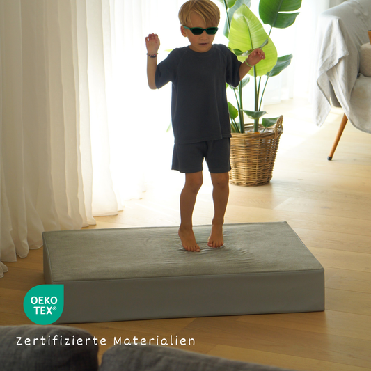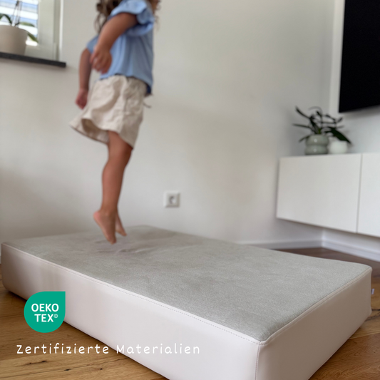 Ganz ehrlich: nicht wirklich. Denn gerade beim Toben sind Sicherheit, Komfort und Langlebigkeit gefragt – und genau da kommen unsere hochwertigen Hüpfpolster ins Spiel. Sie schützen nicht nur eure Möbel (und eure Nerven), sondern bieten Kindern eine kontrollierte, sichere Möglichkeit, sich auszupowern, zu entspannen oder kreativ zu spielen.