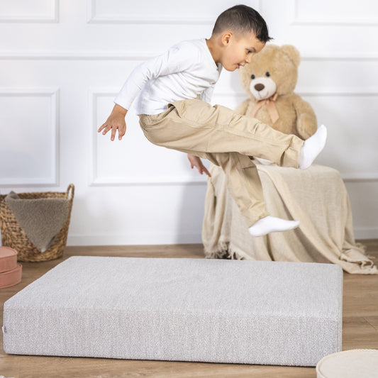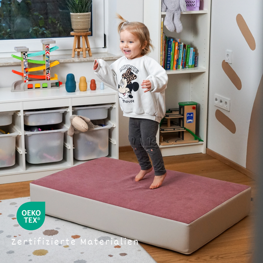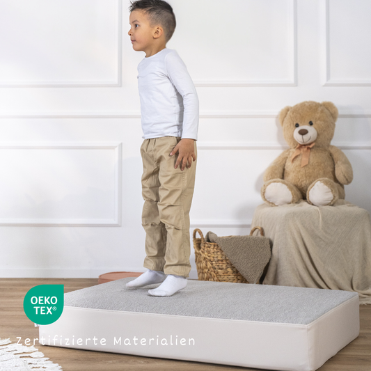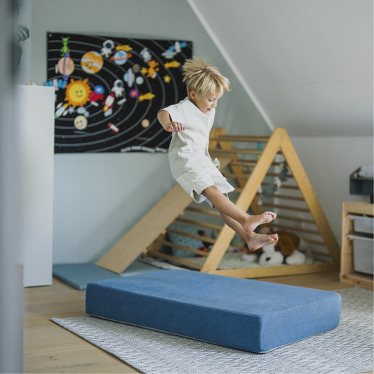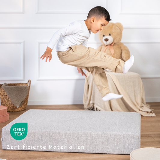 Ob beim Hüpfen, Balancieren oder einfach beim Lümmeln im Kinderzimmer: Unsere Polster machen alles mit. Gleichzeitig sehen sie so gut aus, dass sie sich auch im Wohnzimmer nicht verstecken müssen. In verschiedenen Stoffarten und Farben erhältlich, passen sie zu jedem Stil – von verspielt bis skandinavisch-minimalistisch.